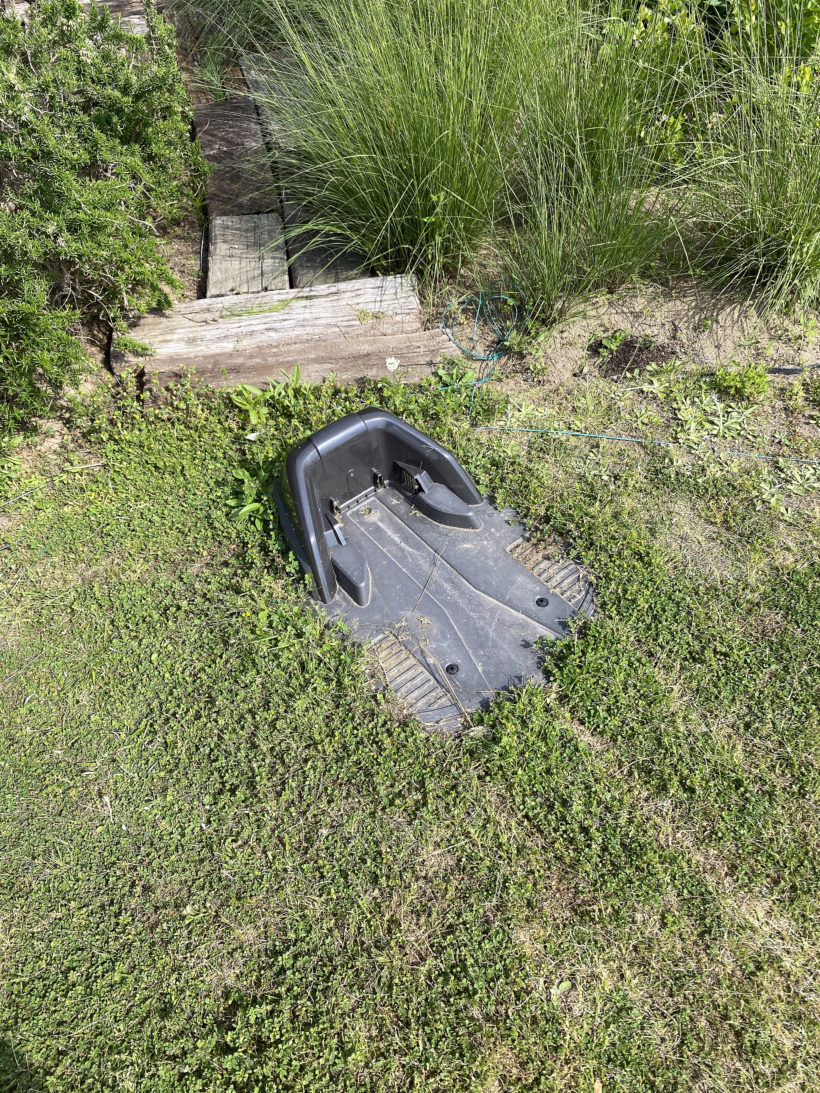 芝刈り機なのかな?と思いますが、実際に芝刈りできているのかは不明…。