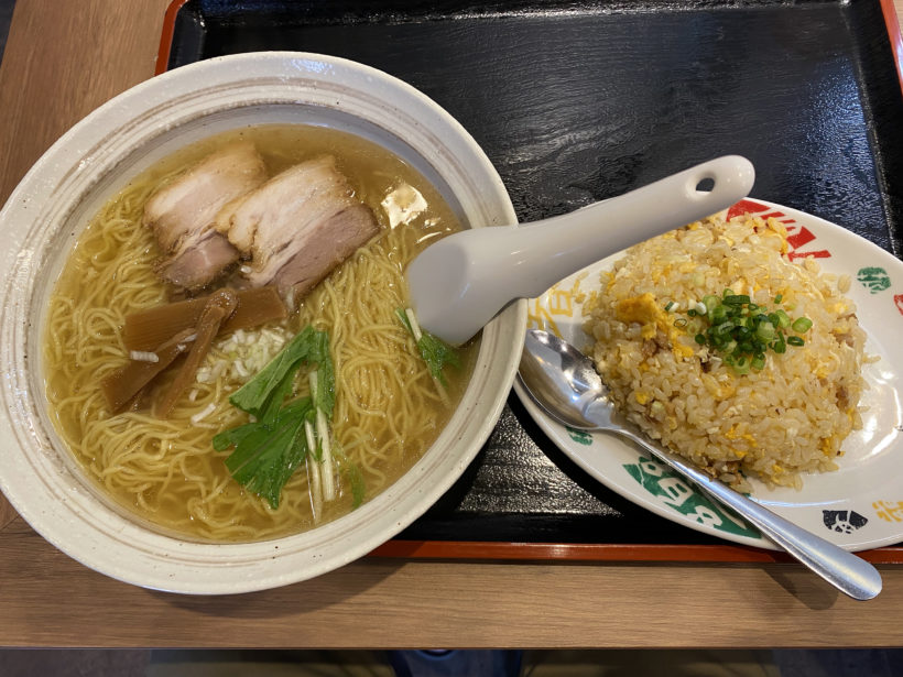 で、注文したのは「焼あご中華(塩)・半チャーハンセット」です。