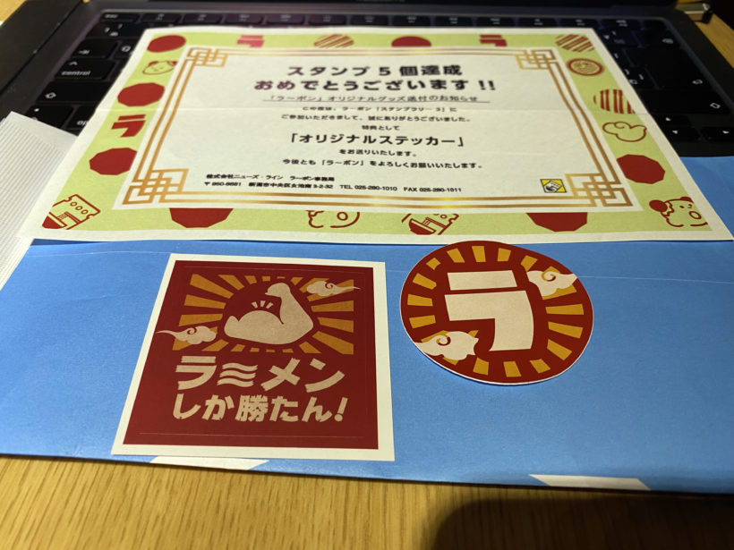 ラーポンの企画でスタンプラリーをやっていたのですが、ぶっちゃけ特典にあまり魅力を感じていなかったF山。