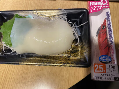 ついでにこの日もアオリイカは釣れなかったので、スーパーでイカ刺しを買っちゃいました。