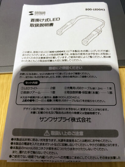 サンワサプライ様が販売している、首掛け式LEDライトです。