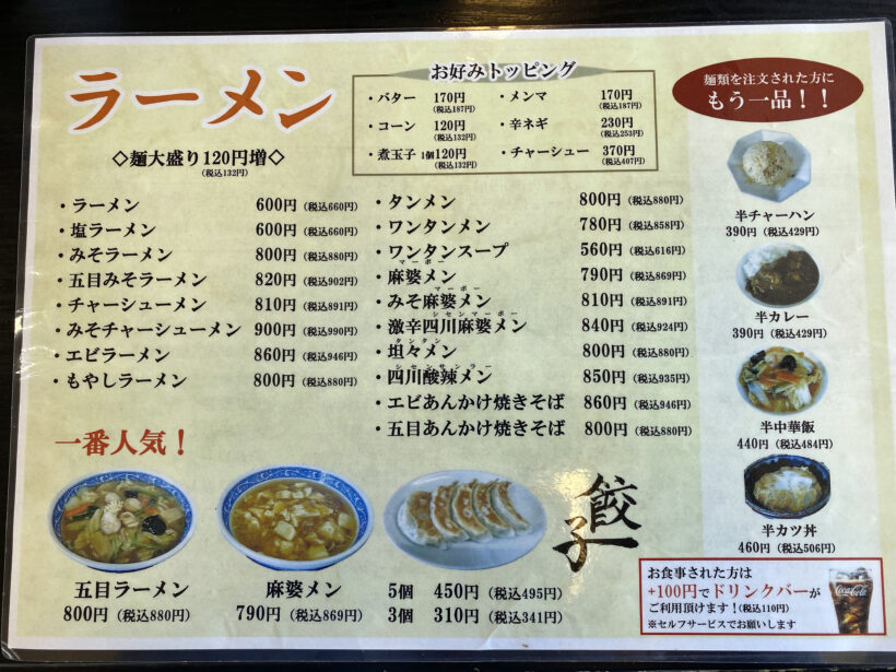 辛さの調整はできる感じではなかったように思いますが、よくよくメニューを見ると「激辛四川麻婆メン」なるメニューも存在するようです。