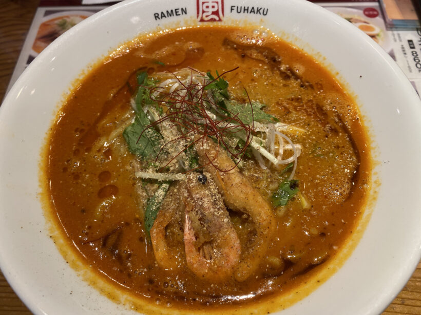 今回は、期間限定メニューである「海老担々麺」をいただきました。
