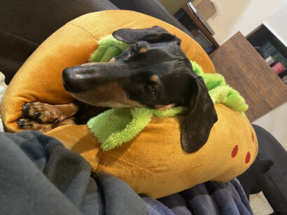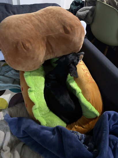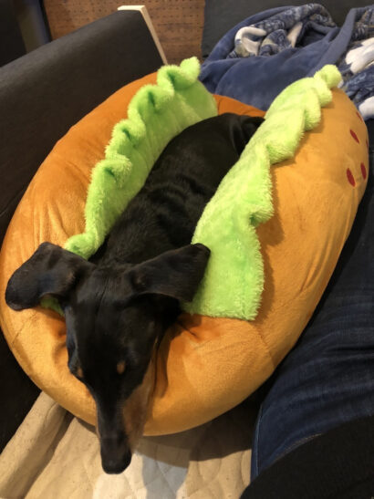 ホットドッグで挟められているのに、意外と不服ではないこはく様。