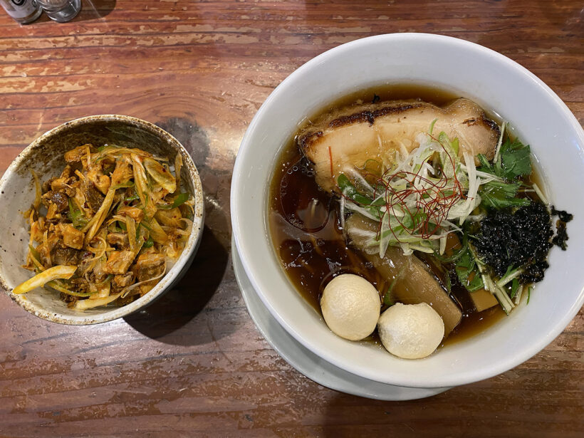 スタンプラリー特典でいただけるのは「濃淡醤油らぁ麺」です。