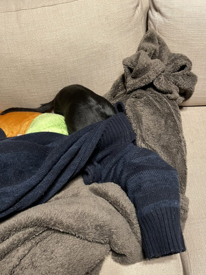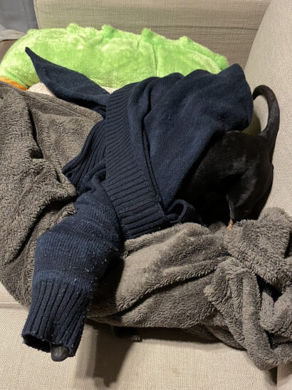 なんてことをしていたら、袖に頭が入ってしまったの画。