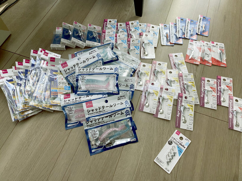 画像にはありませんが、普通のジグヘッドに装着するシャッドテールワームもぼちぼちストックしてました。
