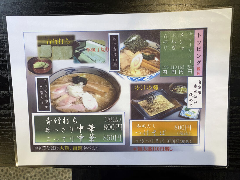 相方さんは「青竹打ちあっさり中華」を注文しました。