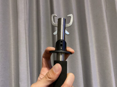 コチラは胴体をハサミで挟んで固定するタイプになります。