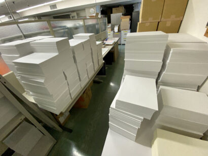 ただ、3Fフロアにいたときは制作部のみんなで紙を運んでいたのですが、2Fフロアに移動してからはF山がほぼひとりで運んでいます。