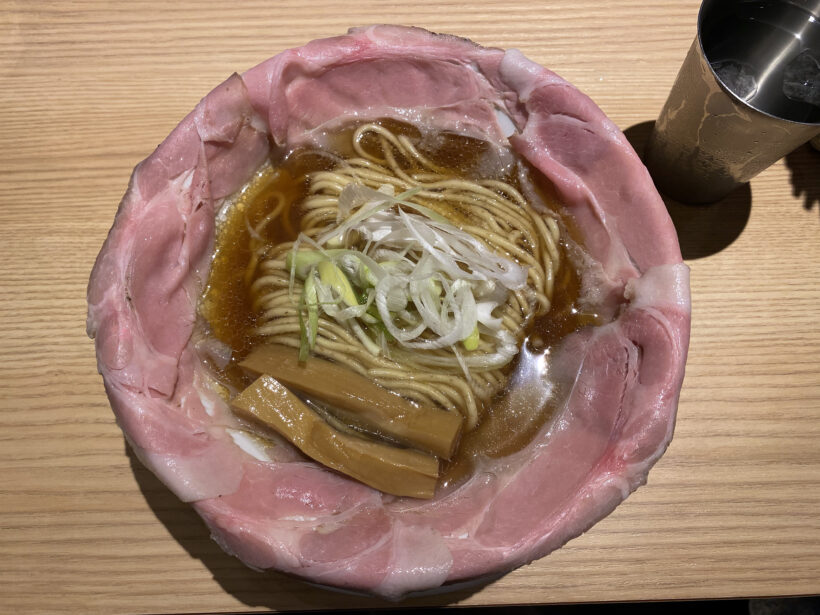 レアチャーシューで極薄で、脂のしつこさは皆無。