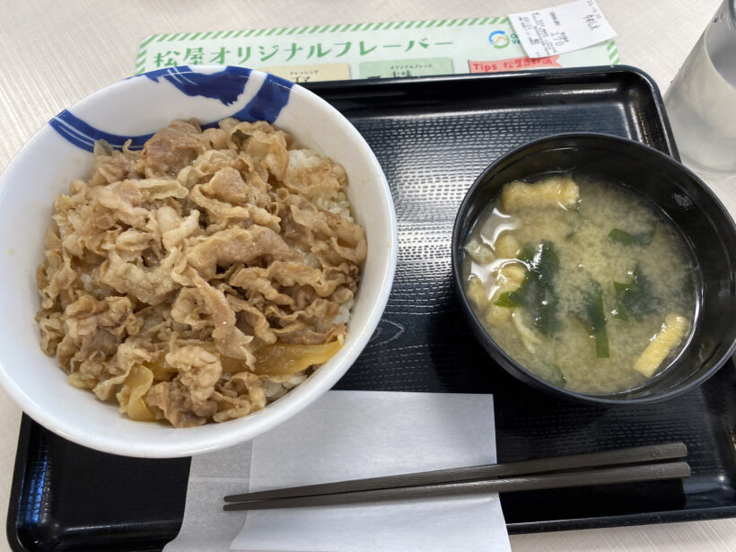 冒険してみるのもアリかな?と思いましたが、なんだかんだで行ったお店は「松屋」でした。