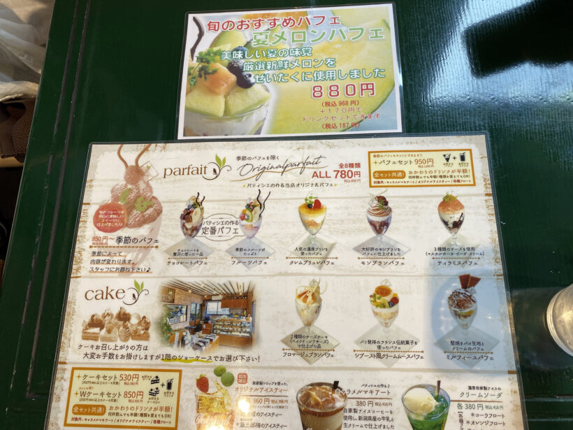 娘氏は「季節のパフェ」(この日はメロンでした)を注文。