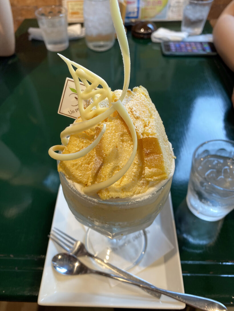 パフェの上に乗っている、「昇龍裂破」みたいな白いヤツは、ホワイトチョコでした。