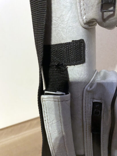 肩にかけるベルトの上側がほぼ千切れていたり…。