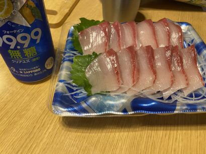 優勝できたので、ご褒美に割引になったお刺身を買って帰りました。
