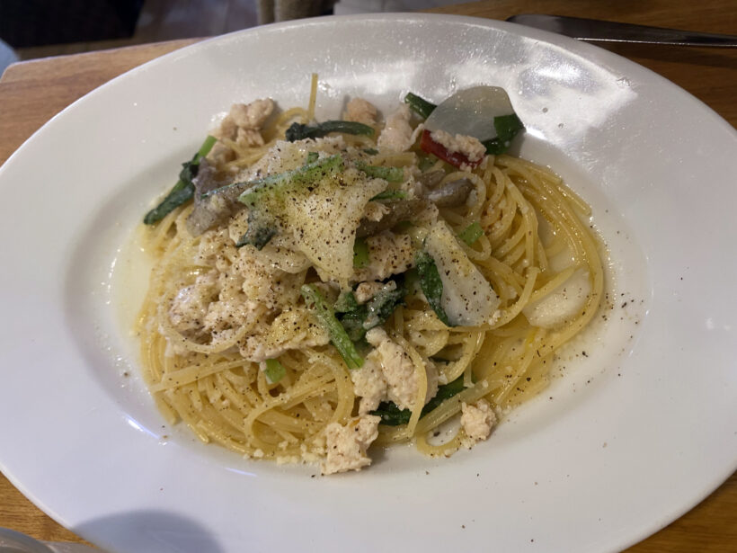 相方さんは「鶏ひき肉と冬野菜のオイルソーススパゲティー」を注文していました。
