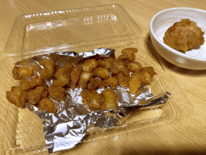 ちなみに画像右の若鶏の唐揚げは、呑み会の帰りに家族へのおみやげで買ったものです。