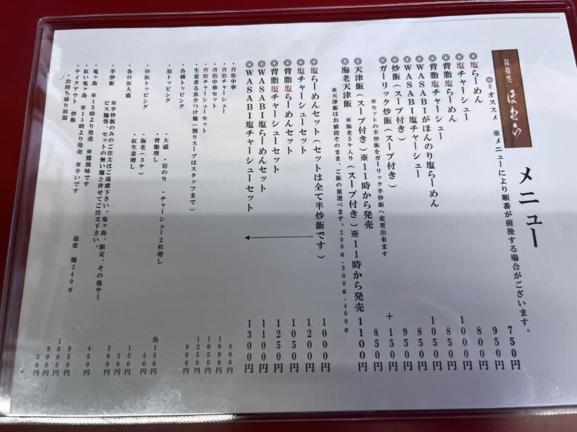 塩らーめん&炒飯推しのお店なのですが、F山の目的は「赤い鬼ヶ島」です。