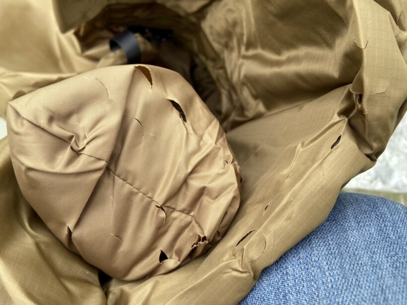 テントで寝泊まりするつもりはまったくないので、突然の雨をしのげればいいかなと思っていましたが、穴が空いているとは想定外。
