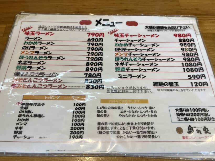 トッピングは海苔・ネギ・ホウレンソウ・チャーシューですかね。