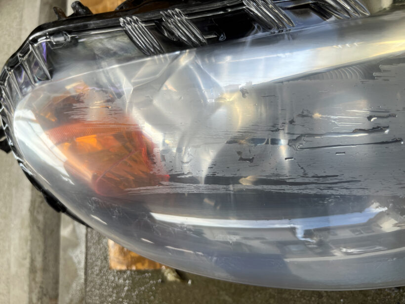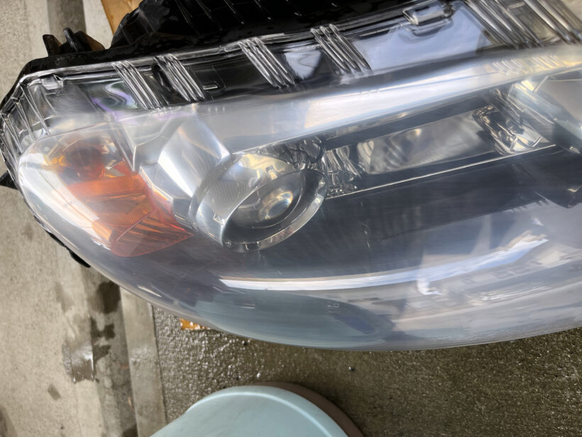 昨日に引き続き、耐水ペーパーでヘッドライトを磨いていきます。