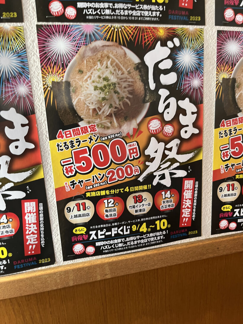 だるまラーメンが500円でいただけるという、太っ腹企画です。