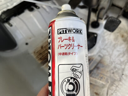 脱脂をするには「シリコンオフ」という製品を使うといいのですが、F山はブレーキパーツクリーナー(以下、パークリ)で代用しました。