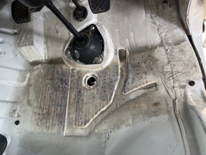 サンバーさんの運転席フロア下が錆だらけだったので、穴が空いてしまわないように錆対策をしていきます。