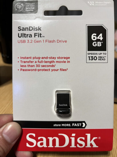 挿せるのはいいんですが、パソコンで使うような普通のUSBメモリだと出っ張りが気になりすぎるので、極力小さいものを買ってみました。