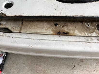 この穴あきも含めて荷室スペースにも錆がたくさんあったので、サビキラーProを使って防錆対策をしておきました。