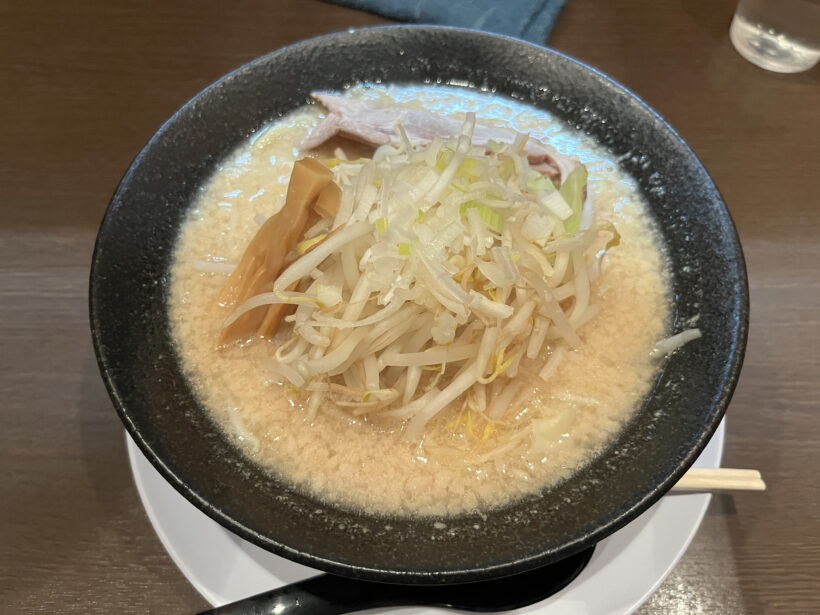 「市玄」と言えば「あさっぱラーメン」という、マグロ出汁のスープのあっさりラーメンが定番メニューのお店ですが、せっかくなので背脂も。ということで、「背脂味噌ラーメン」を注文しました。
