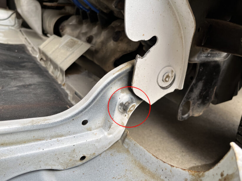 どうやらこの突起まわりが歪んでしまっているようで、エンジンフードを閉める際に干渉しているような気がします。