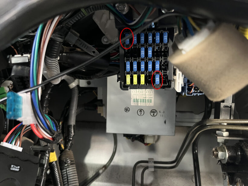 まずは、作業中にエアバックやホーンが作動しないようにヒューズを外します。
