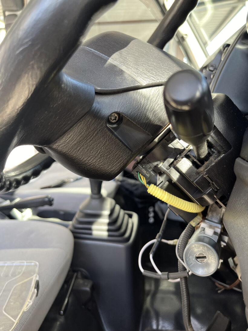 続いて、ハンドル下にあるコラムカバーを外していきます。