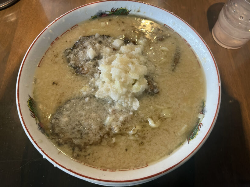 たっぷりの背脂に豚骨スープ。