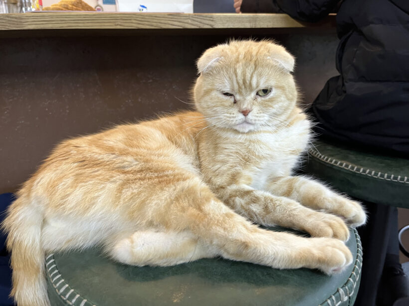 もう一匹の猫ちゃんはあまり人に近づかない感じ。ビリヤードをしているとたまに足元を横切っていたりしてビックリしますが、これがまためっちゃかわいいわけで。
