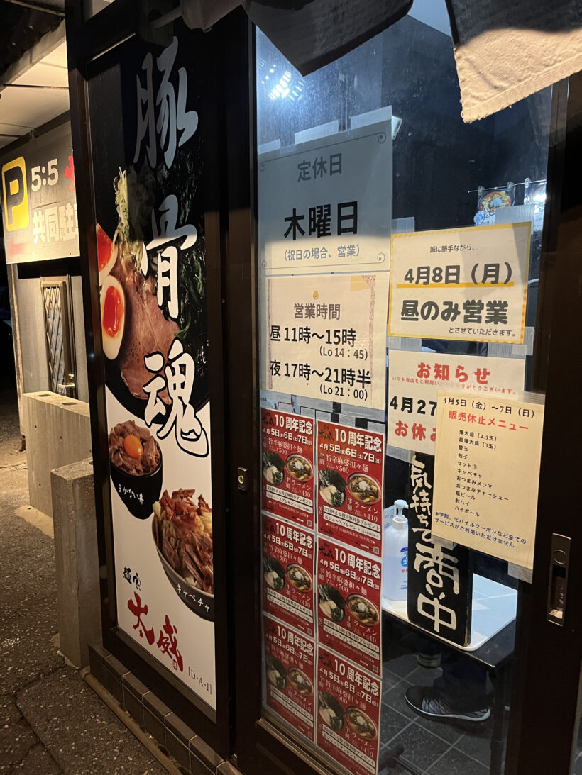 昨日は帰宅後にビリヤードの練習に行ったのですが、その前に腹ごしらえをということで、東区にある「麺家 太威 本店」に行ってきました。