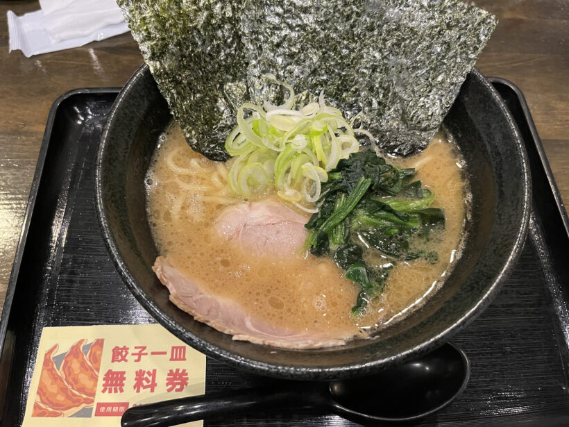 いわゆるスタンダードな醤油ラーメンを想像していたのですが、これは家系ですね。