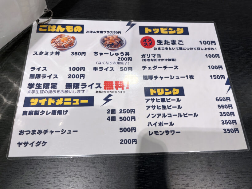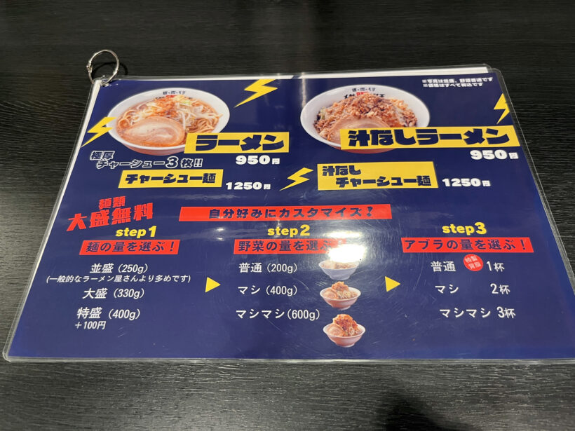 今回は「ラーメン」の麺大盛り&アブラ増しにしてみました。