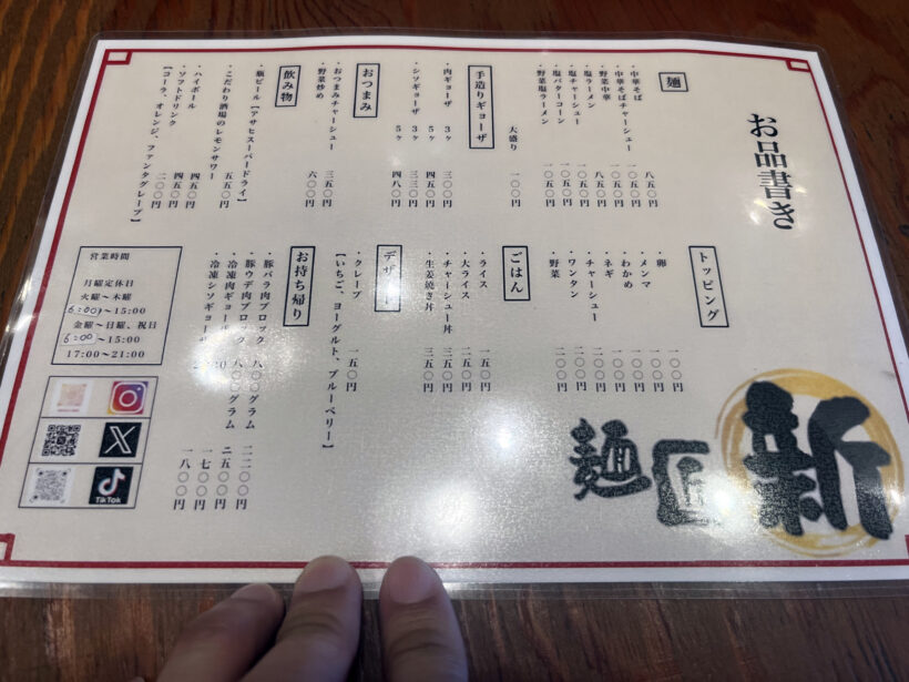 試合の受付に間に合わないと困るので、近くにオープンした「麺匠 新」に行ってみることにしました。