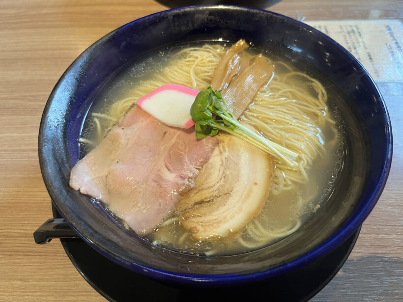 最近のF山は醤油より塩を選びがちなので、「銀淡麗塩そば」(大盛)を注文してみました。
