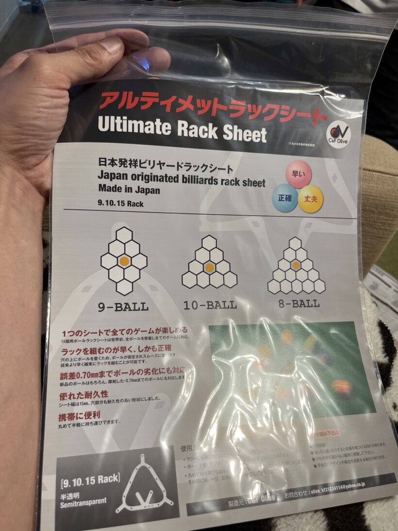 ビリヤードのローテーションの練習をするために、15個のボールのラックが組める「ラックシート」を買ってみました。