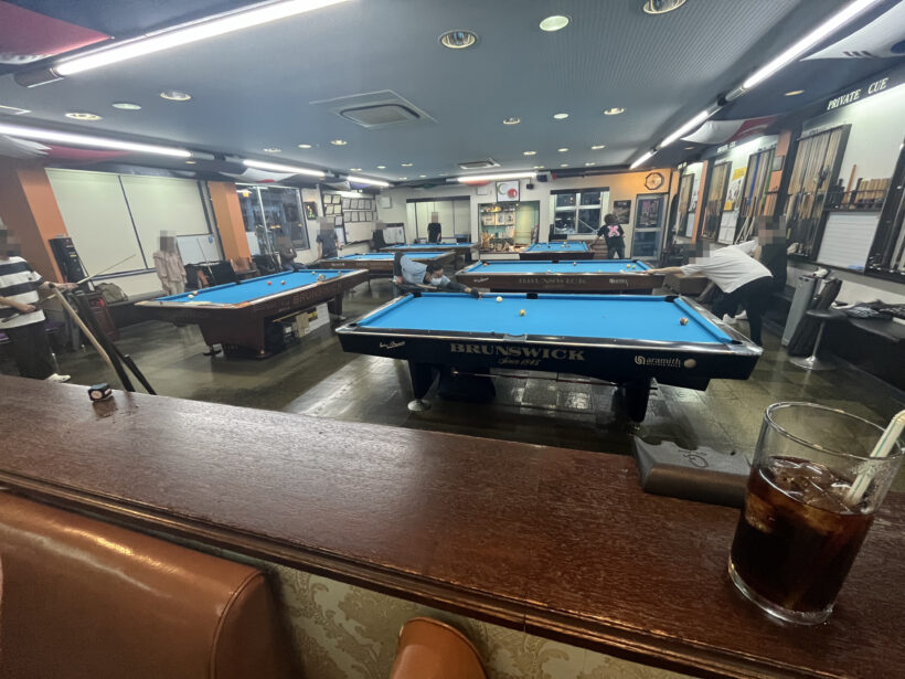 アマローテの前日練習ということで、「ビリヤード名城」に行くことになりました。