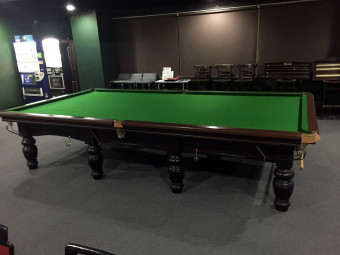 テーブルのサイズは日本で最もメジャーな9ftのテーブルのサイズ感なのですが、ポケットの形状がスヌーカーのテーブルのようになっているらしいです。