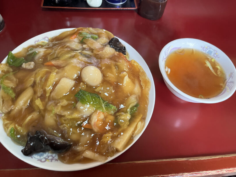 どれを食べようか悩みましたが、今回は「五目あんかけ焼きそば」を注文してみました。