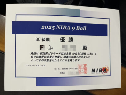 予選を勝ち・勝ちで上がると、だいたい決勝トーナメント1回戦で負けるという「F山あるあるジンクス」がありますが、いい球が撞けていたので勝つことができました。