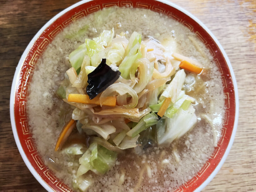 麺は細麺と中太麺の間くらいでしょうか。大盛りにしましたが、ペロッと食べ切れました。