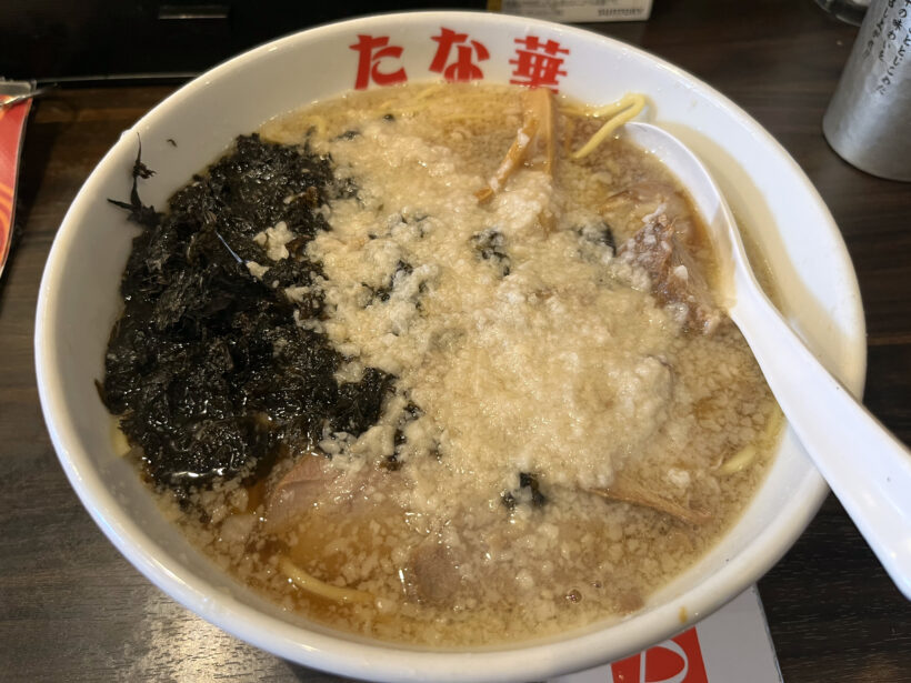 「たな華」といえば麻婆系のメニューしか食べたことがなかったと思うので、今回は「岩のり背脂中華」を注文してみました。