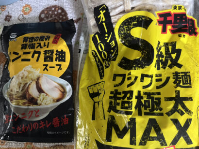 画像右が麺なのですが、スープは別売りだったので、この二郎系になりそうなスープということで画像左の商品とセットで買ってみました。